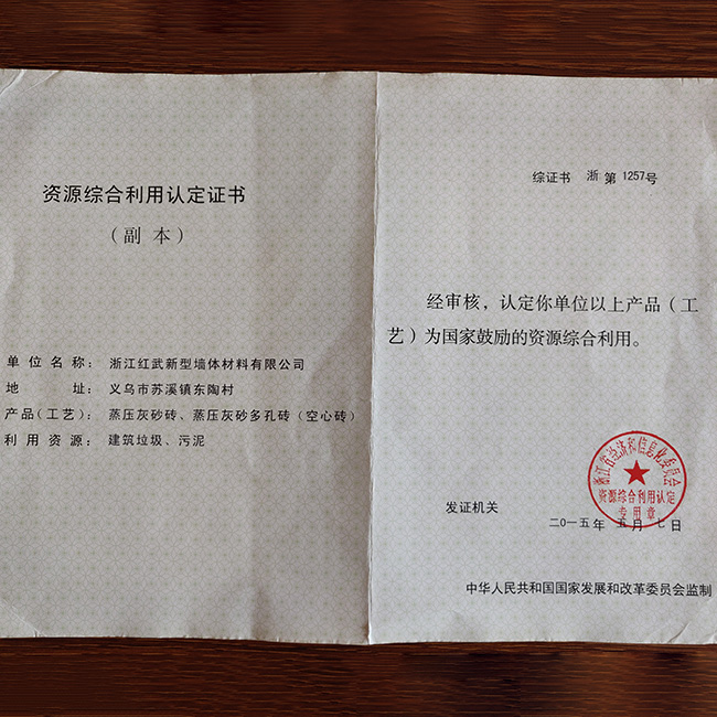 近年來,浙江紅武得到政府有關部門的大力支持,在2014年評為義烏市《機器換人先進單位》,2015年評委金華市《墻材革新先進單位》,產品受國家政策扶持,墻改基金返還用戶,深受開發商、建筑商歡迎。公司還將致力開放和生產新型墻體材料,本著科學管理安全生產,質量為先的理念,為國家的環保建設事業添磚加瓦。